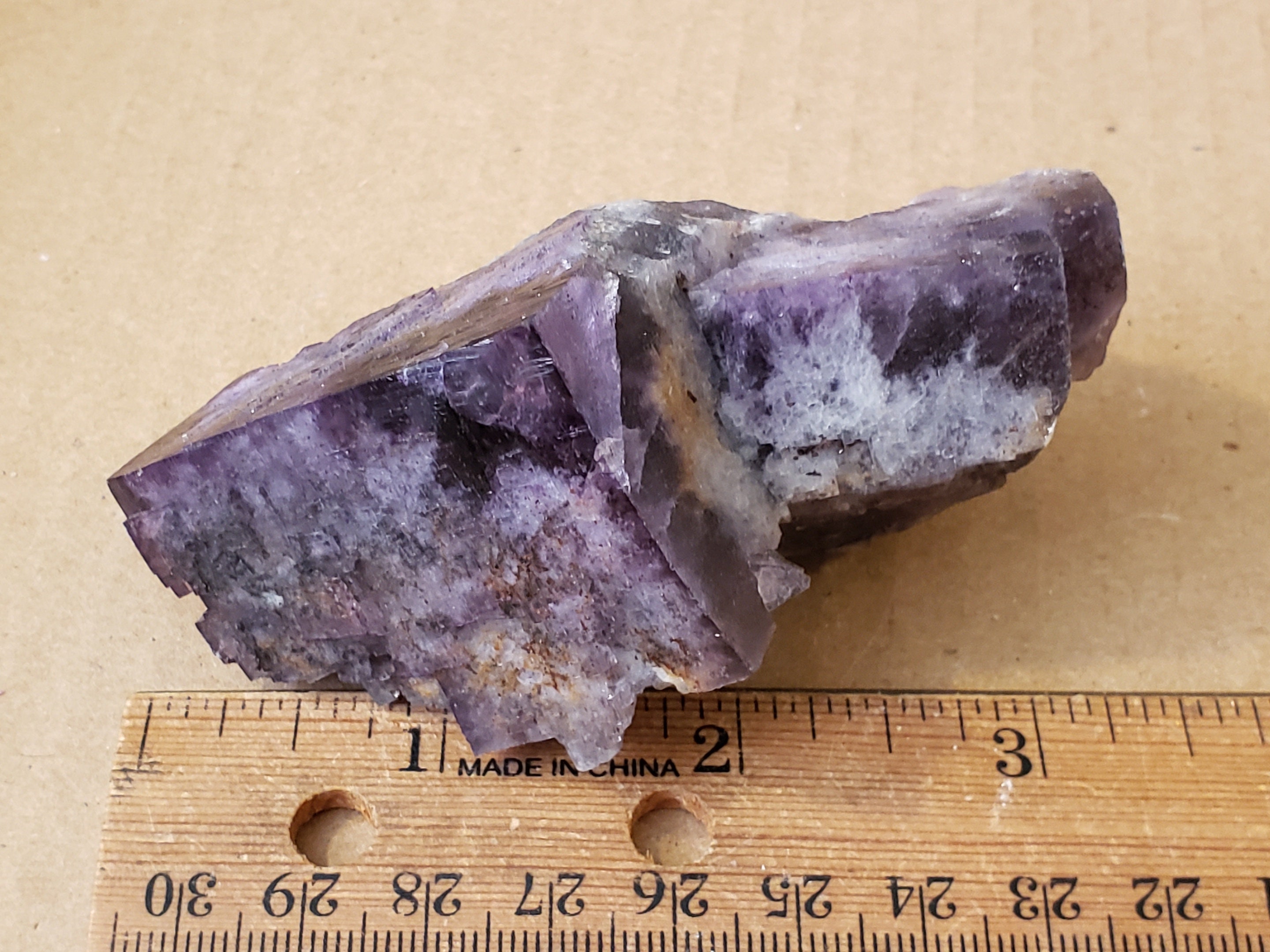 3+ inch purple fluorite specimen with crystals over 1.5+ inch on edge from the Greenlaws Mine, Weardale, England....