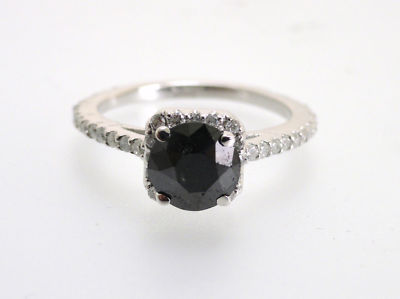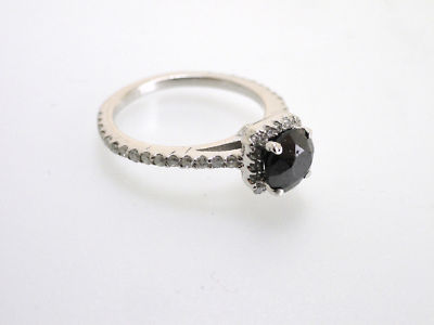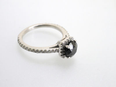 beautiful 14K Gold ROUND-Cut ENGAGMENT AAA BLACK Diamond Ring. AAA BLACK DIAMONDS, SI1 WHITE, HEAVY WHITE RHODIUM** Perfect as an
