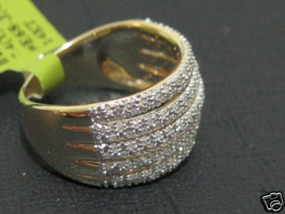 ALL GENUINE MARKED "14K" YELLOW GOLD DIAMOND RING. 3/4 CARAT TOTAL IN 170 ROUND, SI-I1 CLARITY, G-H COLOR DIAMONDS. THIS HUGE 5 ROW BAND MEASURES 20 MM WIDE, WEIGHS 7.4 GRAMS. ALL EXCELLENT CONDITION, NO DINGS, NO DENTS, NO DAMAGE. WILL ARRIVE IN A GIFT BOX. WE ARE HAPPY TO TAKE YOUR OLD GOLD, FINE AND VINTAGE JEWELRY, DIAMONDS, STERLING SILVER OR RARE COINS IN TRADE OR WE WILL SEND YOU CASH. TOP PRICES PAID. EMAIL FOR PRICES AND DETAILS. RARE DEGIGN. ABSOLUTLY GORGOUS PEICE, GREAT POLISH AND FINISH.