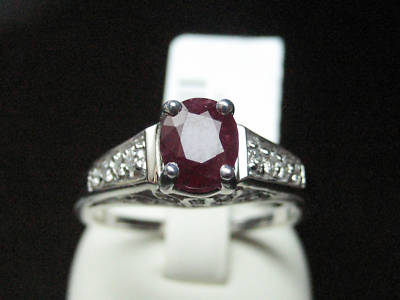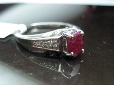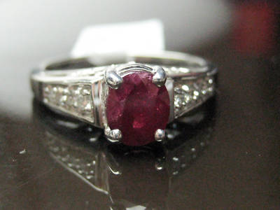 Estate 14k white Gold Bloody Ruby and Diamond Ring