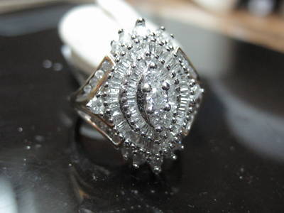 Here is a Fine Cluster Diamond Yellow Gold Ring. Made from Solid 10Kt Yellow Gold and weighs 6.5 grams ($135 worth of gold only) It holds Natural Round Brilliant Diamonds that are S11 Clarity G Color , that add to 1.15 Ct. Very well made ring that is stunning , and she will be thrilled by it. Currently a size 7 which can be sized for FREE Upon request. If you are in the market looking for something special to hand her, this is a cute little piece. Hallmarked 10kt. The ring is 20mm long 16mm wide. |