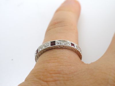 A Beautiful Diamond and Ruby Ring Eternity Band.