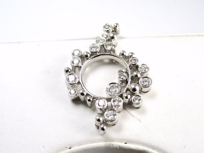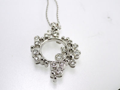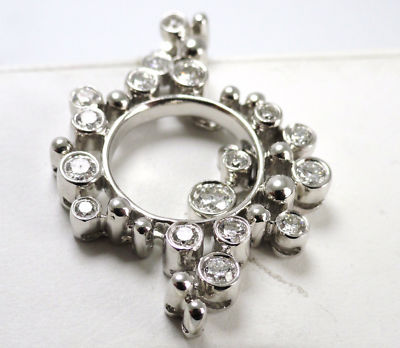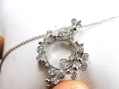 Here is a Fine Garden Bubble white Gold Necklace. Made from Solid 14Kt White Gold and weighs 6.9 grams. It holds 18 Natural Round Brilliant Diamonds that add to 1.00Ct and are G-H Color SI1 Clarity . The pendant section of the necklace is 1 1/4 inches long, and the chain is 16 inches in length. Hallmarked 14kt. Very well made, Excellent workmanship. If you are in the market looking for something special, this is one you can not let go of!