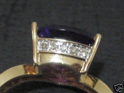 Here is a HIGH END 14KT YELLOW Gold TRILLIAN AMETHYST AND DIAMOND LADY'S RING Ring. THIS RING IS HAND MADE AND ALL THE STONES WERE SET BY HAND. The only way this ring can be sold at the price were setting is by us by large quantity to sell to our online customers. The center TRIILIAN AMETHYST is 2.00 Ct ,A STEP LOWER YOU HAVE 30 DIAMONDS WHICH COVERS THE ACCENT, SIDE AND ALL OVER THE STONE. 0.30CT IN DIAMONDS. BEAUTIFUL POLISH AND FINISH AS YOU CAN SEE IN THE PICTURE. It is currently a size 7 and can be sized for FREE upon request. Good Luck and Bid to Win.