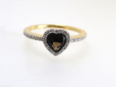 0.89 CT HEART CUT SMOKY TOPAZ & DIAMOND RING 14K Y GOLD