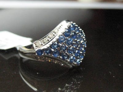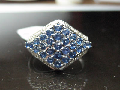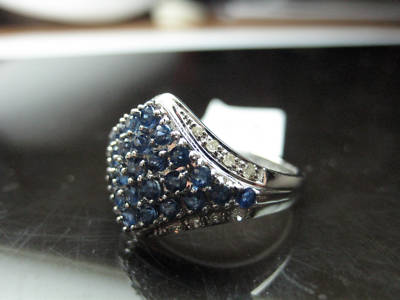 You are looking at a 1.00 ct blue sapphire and diamond ring. These beautiful stones are set on a solid 14k white gold (stamped). The ring is very well polished and you can add it to your beautiful selection. Not only is this ring full of luster and briliance, but it is been set in cluster form. if you look throughout the internet, you will not find another ring like this one. very unique and stylish. The color of the diamonds are G-H color and SI1 clarity. The ring is currently size 7 and can be resized for free upon request. Retail suggested price of this ring is $1,190, but you always get your jewelry at a fraction of price @ Agacci Diamonds. thank you and good luck!