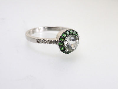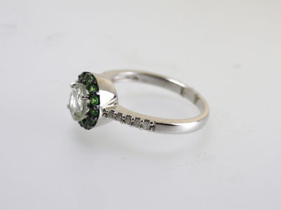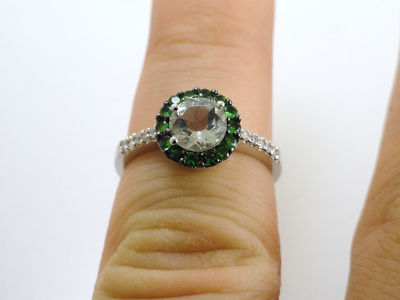 This is a Gorgous 14k White gold Round cut Lime Amethyst, Tsavorite and diamond ring. Very nice piece!