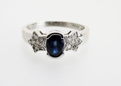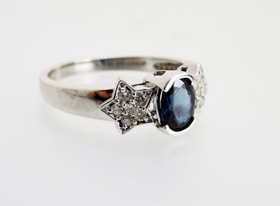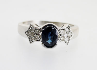 Here is ANOTHER OUR BEST SELLING DESIGNER RING. GREAT ART GREAT WORK. THE CETER STONE FEATURES A OVAL CUT SAPPHIRE, A STEP LOWER YOU SEE FANCY DIAMONDS WHICH IS .31 CT IN DIAMONDS. The ring has a beautiful STAR design to it. It holds 1.25 CT of NATURAL SAPPHIRE that has a beautiful DARK BLUE color. THIS RING HAS FANTASTIC BRIGHTNESS TO IT. NOT MANY STORES HAS IT OR IS AVAILABLE FOR PURCHASE. If you are looking for a SAPPHIRE Ring you should TAKE A LOOK OF THIS RING! remember when you shop with agacci diamonds you are shopping at MNUFACTURE price. The ring is currently a size 8 and can be sized for FREE upon request. Good Luck and Bid to Win.