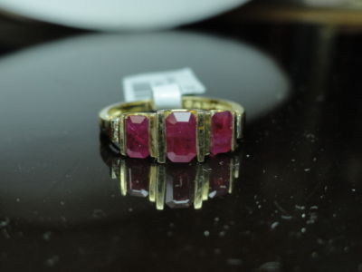 FINE GENUINE 14KT RED RUBY AND YELLOW GOLD HIGHLY ORNATE OLD WORLD 3-STONE RING IS ADORN WITH RUBY AND 100% GENUINE DIAMONDS OF APPROX 1.50 CTW...THE RING IS 3.2 GRAMS AND IS A SIZEABLE 7,(PLEASE NOTE THAT THERE WILL BE NO REFUND AFTER SIZING.)CONDITION EXCELLENT==NO DAMAGE TO THE STONES OR RING...RETAIL PRICE $1290.00...--------------------------------------------------------------------PLEASE DO NOT WAIT FOR THE LAST MOMENT-- ,,,...........WE WILL GLADLY ANSWER ALL QUESTIONS DURING NORMAL BUSINESS HOURS OF 9AM--6PM...MONDAY---FRIDAY SHIPPING IN USA BY USPS ---