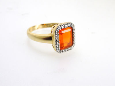 FINE 14K DARK ORANGE EMERALD QUARTZ & DIAMOND SOLITAIRE RING**