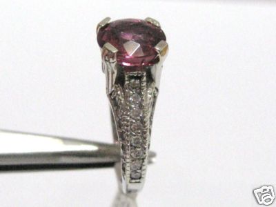 The color of the PINK tourmaline is a WARM AND BEAUTIFUL PINK COLOR. The diamonds are clean and white and very brilliant. The ring is a size 5 and can be resized for free at your request.