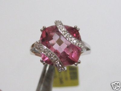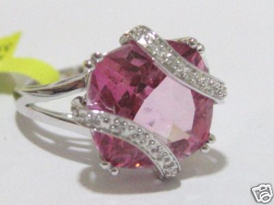 FINE 7.45 CT PINK TOPAZ & DIAMOND WHITE GOLD RING JEWEL