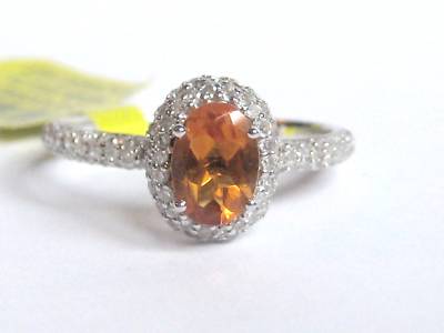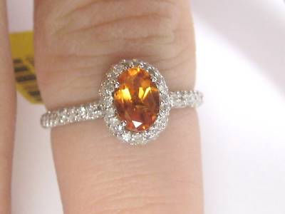 - Oval 14K White Gold Citrine and Diamond Ladies Ring