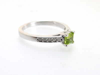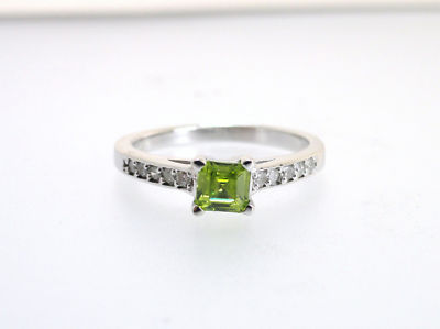 Here is OUR BEST SELLING RING for the past five years and still today. We have sold over thousands of this beautiful piece. but just last week a customer recommended that this ring would be beautiful if we set Blue Peridot on it. The ring is a cutie. It holds .35 Ct of Princess cut Peridot that has a beautiful Green color. 0.15 Ct of Round brilliants are all over the blue stones and the sides. If you are looking for a Blue Sapphire Ring you should not shop any further because this is it the Classic Peridot Ring on the NET! Retail price of the beauty is $980 but remember when you shop with agacci diamonds you are shopping at wholesale price. The ring is currently a size 7 and can be sized for FREE upon request. Good Luck and Bid to Win.