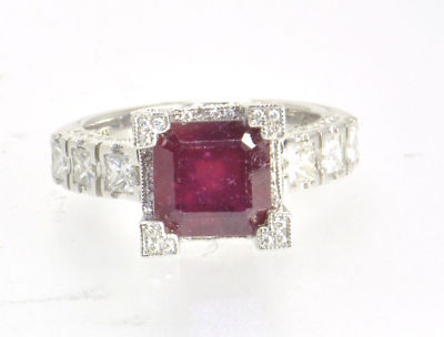 Gems: 1 PRINCESS CUT faceted cut natural ruby of approx 2.25 Ct