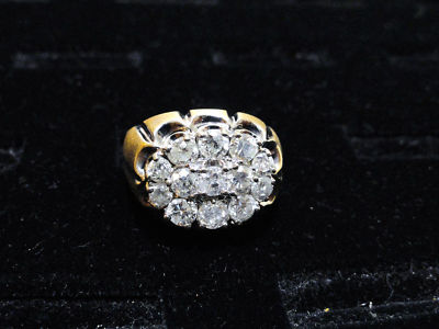 Stunning 14k 2.25 Carat Diamond Cluster Men's Ring YG Sz 8