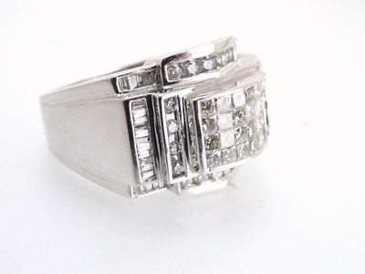 Genuine Natural 3.00 CT Princess Cut Diamond Mens Ring Elegantly set in Solid 14K white Gold