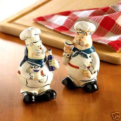 Who can resist this roly-poly pair of feline chefs? These gourmet kitties lend merriment to most any meal, while keeping a generous helping of salt and pepper within ready reach.