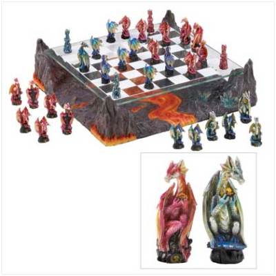 Dragon’s Realm Chess Set - Legions of dragons face off in battle, fighting fiercely for dominion over a fiery land. This stunning fantasy set adds a new dimension to the
