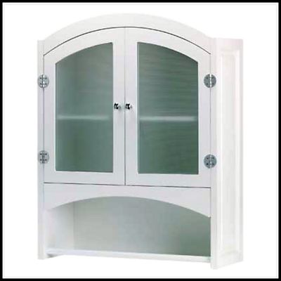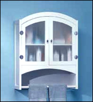 Bathroom Cabinet - Understated chiffonier elegantly hides bath products and towels behind opaque glass doors. Silver-finished, magnetic-latch hardware.