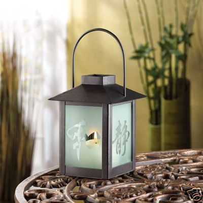 Chinese Character Candle Lantern - Chinese calligraphic "Joy", "Peace", "Love" and "Harmony" characters glimmer softly from etched glass panels.