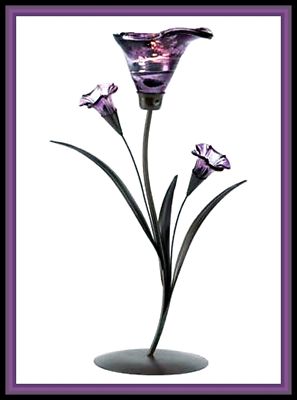 Twilight Bloom Tealight Holder - A single dusky purple lily holds a tealight candle at hits