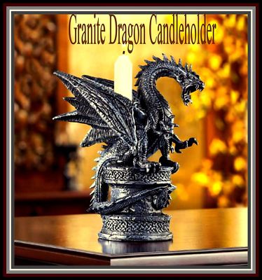 Granite Dragon Candleholder - A granite-gray dragon hisses a warning to those who dare approach;