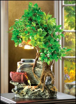 Bonsai Waterfall Fountain - Water flows from rock to rock in a soothing blend of sight and sound, as a lush bonsai tree shades the scene. Everlasting faux greenery stays beautiful forever; enjoy this lovely fountain year after year!