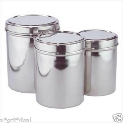 Set of 3**STAINLESS STEEL CANISTER SET W/LIDS**NIB