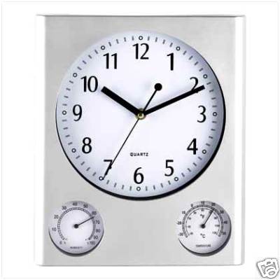 Find out the temperature and time at a glance with this all-in-one weather station clock! Professional gauges display time, temperature and humidity, all housed in a handsome contemporary case. All in one wall clock with hydrometer and thermometer function. Quartz clock with hour, minute and sweep second hands. Thermometer with Celsius and Fahrenheit. Humidity meter to determine whether it is very dry, normal or humid.