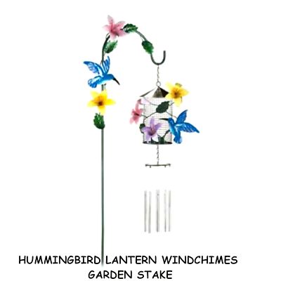 Hummingbird Lantern Chime Stake - Winsome garden stake combines lovely sounds