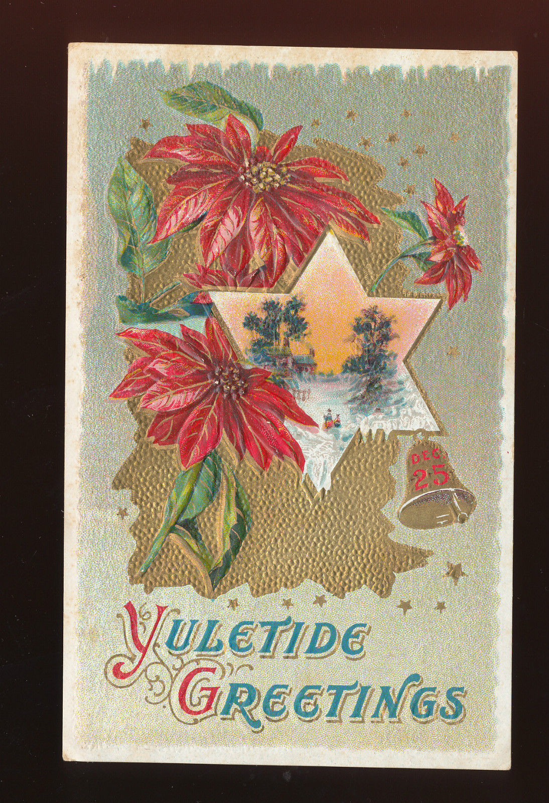 Poinsettia Flowers Christmas Postcard-Yuletide Greetings Antique Unused -ggg968