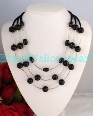 NEW 3 Rows black faced agate 18K Gold Plated necklace