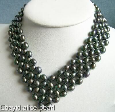 Beautiful black rice freshwater pearl V necklace 18"