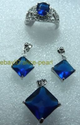 Set 18K GP Blue Crystal Pendant Earring Ring6-9