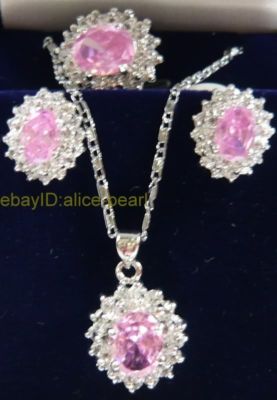 Set 18K GP Pink Crystal Pendant Earring Ring