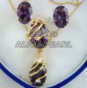 Set 18K GP Purple Crystal Pendant Earring Ring