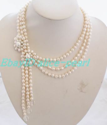 2010 NEW 3 Strands White Freshwater Pearl Necklace