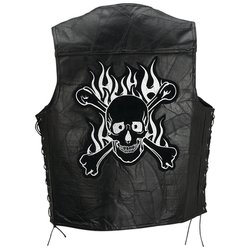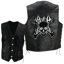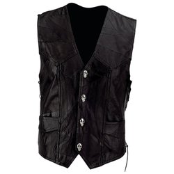 Black Buffalo Leather Motorcycle Vest with Skull Patch - Size 3X