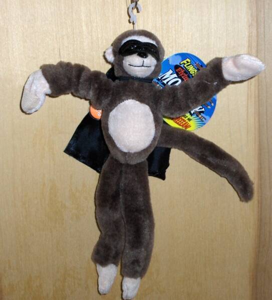 EACH SUPERFLY SLINGSHOT SCREAMING MONKEY COMES WITH MASK AND CAPE.