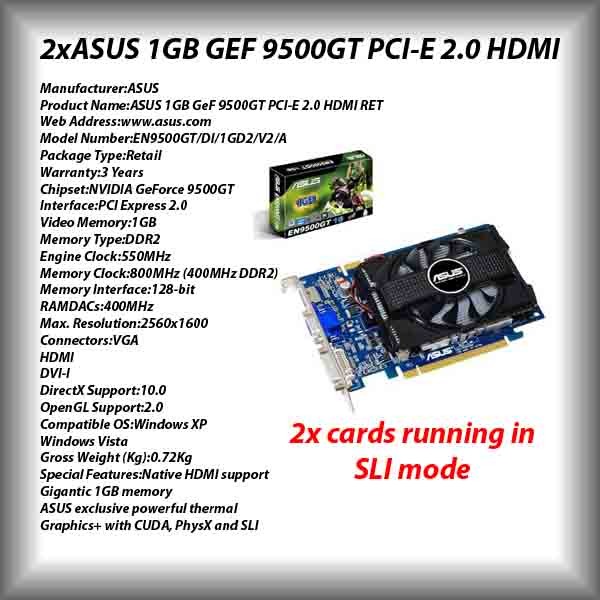 2x 1GB NVIDIA 9500GT GRAPHICS CARDS RUNNING IN SLI MODE