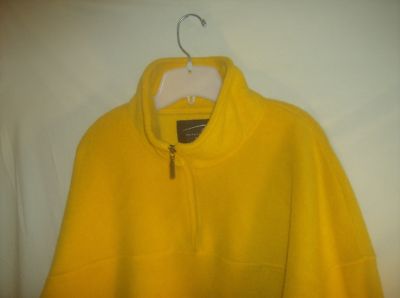 You are viewing a yellow, men's size 3 XL, heavy fleece pullover jacket by CH Outerwear. It is 100% polyester and is machine washable. Neck measures 22", Sleeve length is 39.5", and the length is 31".