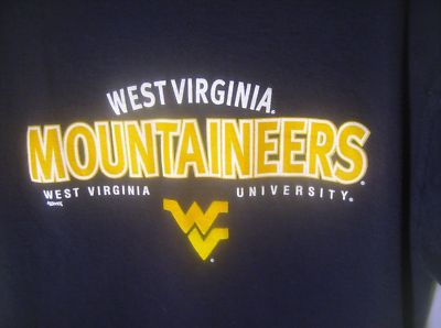 You are viewing a Jerzees 100% cotton T-shirt from WVU. In is like new. No holes or tears. Yellow and white lettering on navy. Sleeves are 17" long and the shirt is 30" long.