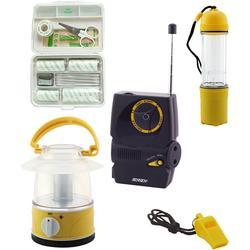 JENSEN Jensen MR-515K Weather Emergency Kit with Radio and Flashlight Model: mr-515kThe Jensen(r) MR-515K Emergency Kit includes a water-resistant flashlight, a mini lantern, a First Aid kit, a whistle, and an all-alert receiver with FM Auto Scan and a Safety Siren. The receiver gets Weather, Marine Forecast, and All Alert information on all 7 Weather Band frequencies. FeaturesWater-resistant flashlight with a lanyard Power: 2 x 'AAA' (UM-4) (included) Size: 1 3/4 in x 7 in Mini lantern Power: 4 x 'AA' (UM-3) (included) Size: 4 1/2 in x 5 1/4 in First Aid Kit FDA approved Whistle with a lanyard All alert receiver with FM Auto Scan and Safety Siren Receives instant 24-hr Weather, Marine Forecast, and All Alert information on all 7 Weather Band frequencies Power: 1 x 9V (006P) (included); AC adaptable (AC adaptor not included) Size: H 4 7/8 in; W 3 3/8 in; D 1 3/4 in