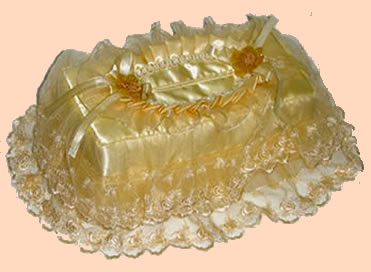 Looking for that perfect touch to your romantic bath? Try a new, fresh idea by adding a kleenex sunny satin tissue box cover that adds superb class to your bath counter. This sunny golden satin and lace is perfect to renovate your bathroom or bedroom, the body of this tissue cover is all satin and trimmed with striking scalloped flowered lace trim. The top is perfectly crafted with plush golden satin and enhanced with two bows for delicate tissue disposal, the perfect romantic decor idea for a Victorian style bathroom