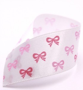 1" 5YD SMALL RIBBON PRINT SATIN Ribbon white + pink