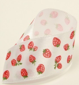 1" 5YD strawberry PRINT silky SATIN Ribbon bows white