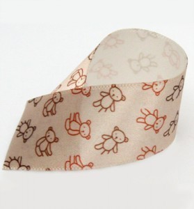 1" 5YD TEDDY BEAR PRINT silky SATIN Ribbon light brown