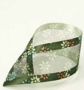 1" 5YD SATIN EDGE ORGANZA RIBBON FLOWER PRINT KHAKI