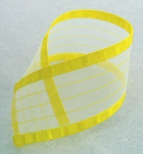 1" 5YD ORGANZA RIBBON SATIN EDGE THREE LINE YELLOW